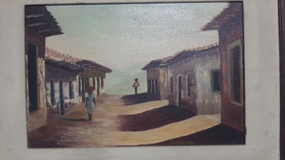 Óleo sobre tela - 20x30 - moldura 37x47 - assinado por Biancalana - representando o cotidiano